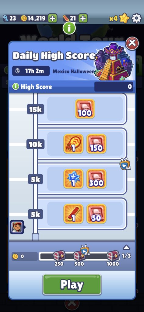 This is where Subway Surfers shines. Missions, medals, and leaderboard scores constantly feed your sense of progress. Lasting just a few seconds longer than your previous run feels oddly rewarding, and nothing beats the thrill of finally topping your own high score. Bright animations and score multipliers make those wins even sweeter.