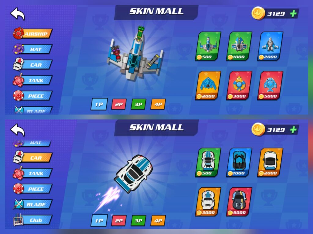 While each mini-game has simple rules, they still offer room for strategy and skill expression. Outmaneuvering opponents in Tanks, setting traps in Tic-Tac-Toe, finding the perfect drift angle in Racing. Additionally, the Skin Shop allows players to personalize their characters’ appearance with different hats, vehicles, and outfits. This customization doesn’t affect gameplay but satisfies the desire for self-expression and creativity.